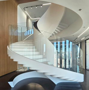 - امکان طراحی پیچیده و مدرن: پلههای مارپیچ، شناور و معلق بدون نیاز به اسکلت سنگین